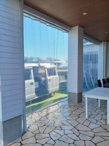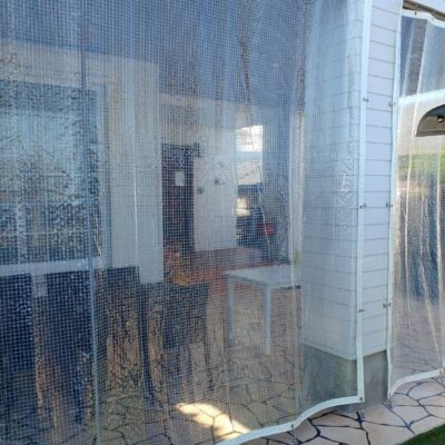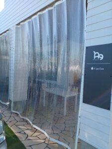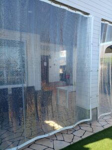 外でバーベキューなどをするとのことで、海の近くにある為、雨風があってもバーベキュー等が楽しめるようにカーテンを付けてほしいとのご依頼でした。